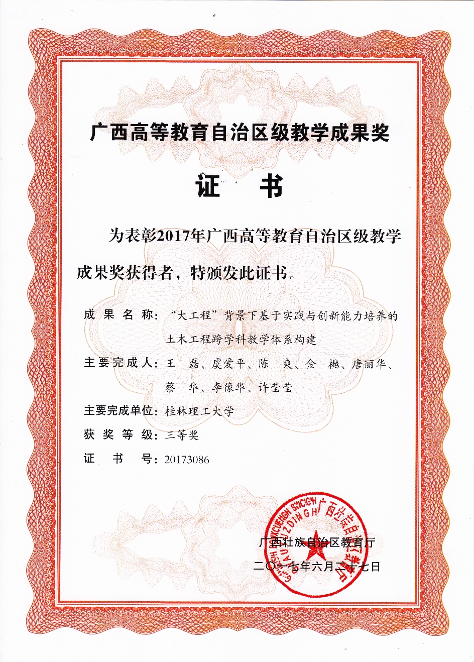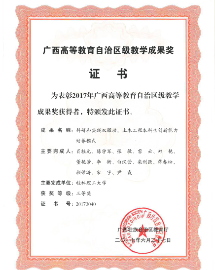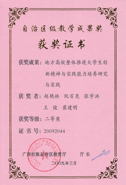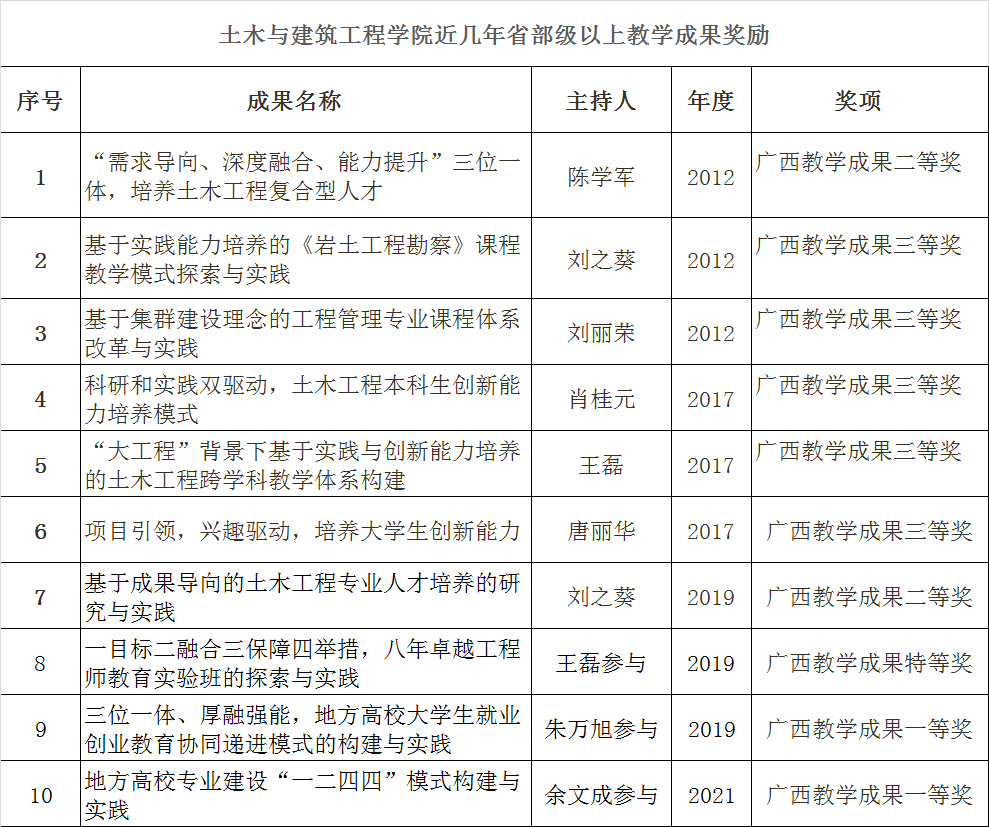 学院始终把深化教学改革、提高教学质量作为教学工作的重点,教学改革和学科建设成效显著。已先后完成全国教育科学“十一五”课题、广西教育科学“十一五”课题、新世纪广西高等教育教学改革“十一五”课题、广西教改工程“十一五”课题等10项省部级以上教改课题。经过多年教学研究和课程建设,团队在教学改革研究方面获得了广西优秀教学成果二等奖2项、三等奖5项等。