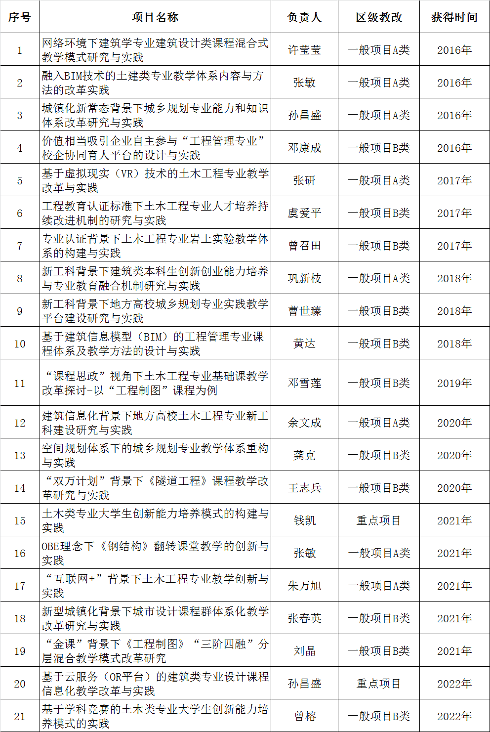 土木与建筑工程学院近年省部级以上教学项目