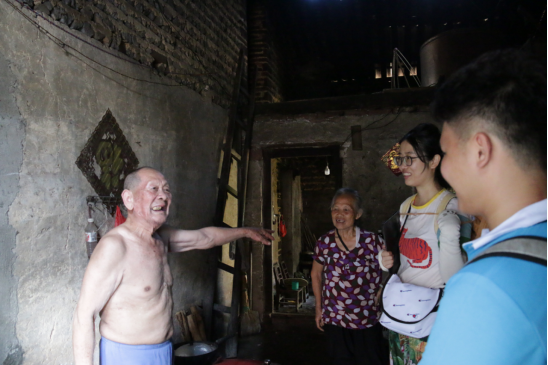 81岁的老人在与实践团员交谈