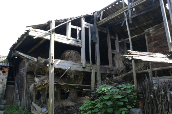 由于无人居住而逐渐损坏的月岭村古建筑