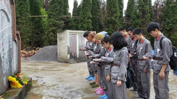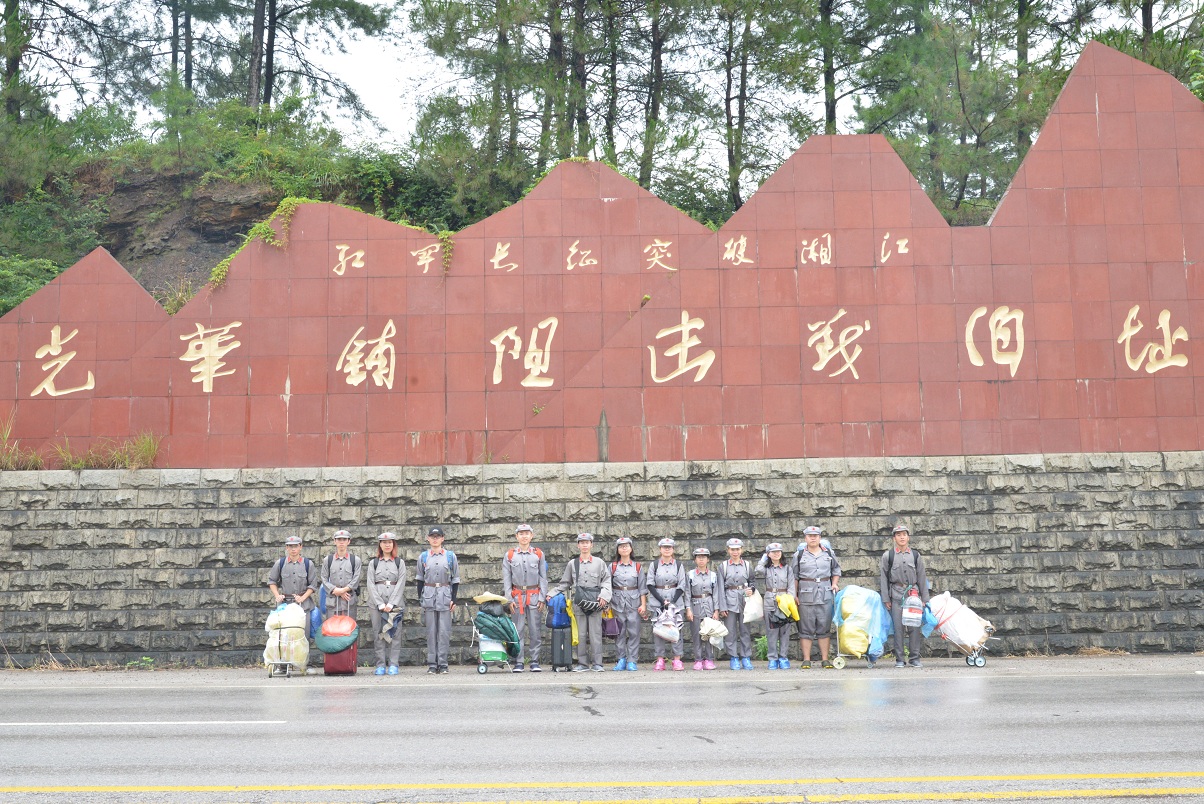 1934年11月25日长征队伍进入广西,蒋介石利用湘江天险设置了第四道封锁线,妄图歼灭红军于湘江东岸,27日红军先头部队渡过湘江,控制了界首镇,选定渡江点,架设临时浮桥,28日三军团四师在光华铺一带设立阻击战场,防止桂系军阀进攻中央纵队在界首渡江。当日战争打响,战场从湘江东岸至光华铺小山坡一带,由于无险要地势可守,四师十团团长沈述清,师参谋长代团长杜宗美等团、营、连级指挥员及战士千余牺牲于此。战斗历时短短的三天,红军战士以血肉之躯和大无畏的钢铁革命精神,阻击了数倍于己的敌人多次进攻,取得了阻击战的胜利。团队成员被这段历史震撼都沉默不语,中国工农红军表现出的不畏艰险,英勇顽强的革命英雄主义和革命乐观主义精神不仅仅表现在界首这场光华铺阻击战中,在红军长征的整个战斗历程都有体现,这种精神是广大青年一辈子不懈努力追求的精神力量。