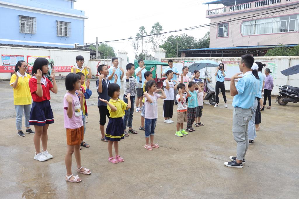15日上午,在三树村委会,团队成员在我院团委书记姚慧老师的带领下认真布置完画室后,看到当地居民带着孩子们陆陆续续来到三树村委会,立即积极引导孩子们到画室就座并分发画纸和画笔,然后指导他们如何更好地画出他们脑海中的图画。绘画过程中,整个画室的气氛非常活跃,家长陪伴孩子们认真地画出自己心中的图画,团队成员在旁边积极指导。绘画完成后,孩子们拿着自己的作品与团队成员开心合影。随后,团队成员热情教孩子们跳拍拍操,孩子们十分兴奋地学习着。由于突然下雨,趣味运动会被迫取消,但是孩子们热情不减,团队成员给每位孩子分发书包、书本和笔盒,希望他们快乐成长、早日成才。