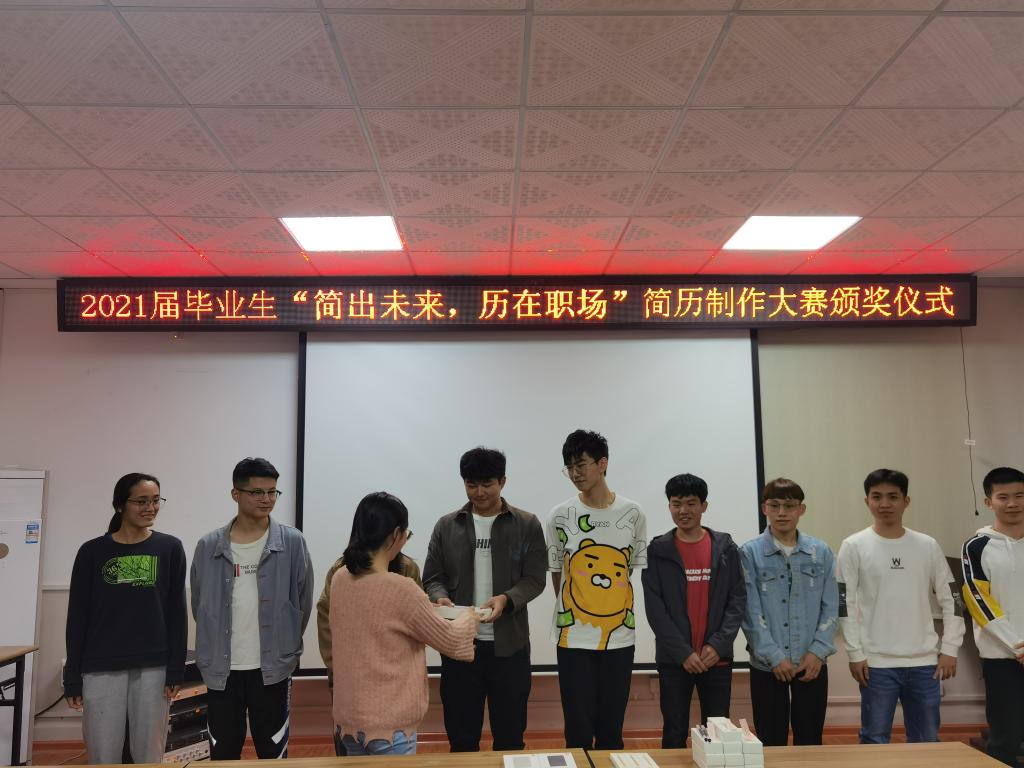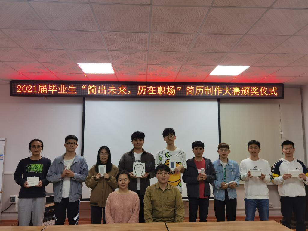 自2020年9月10日以来,土建学院2021届毕业年级的简历创意大赛拉开帷幕,经过班级评比,学院评比等两个环节,学院学工办和院办老师担任评委。其中有41份简历脱颖而出,并且有三个班级被获评优秀组织奖。11月9日下午,在教4栋,4203召开了“简出未来,历在职场”简历大赛的颁奖仪式,获得三等奖以上的同学和获得优秀组织奖的班级代表参加了本次颁奖典礼。