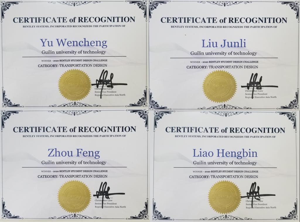 2020年10 月27日,全国 2020 Bentley Institute “星光杯” BIM 设计挑战赛公布获奖名单,土木与建筑工程学院小组参赛作品《路与桥》荣获“交通类”一等奖。此次参赛作品指导老师为桂林理工大学土木与建筑工程学院余文成副院长与刘均利副教授。在两位指导老师辛勤付出、认真指导下,周枫、廖恒彬等2名参赛学生运用Bentley系列软件构建了一套包括地形、道路、桥梁、附属设施等的完整BIM模型。