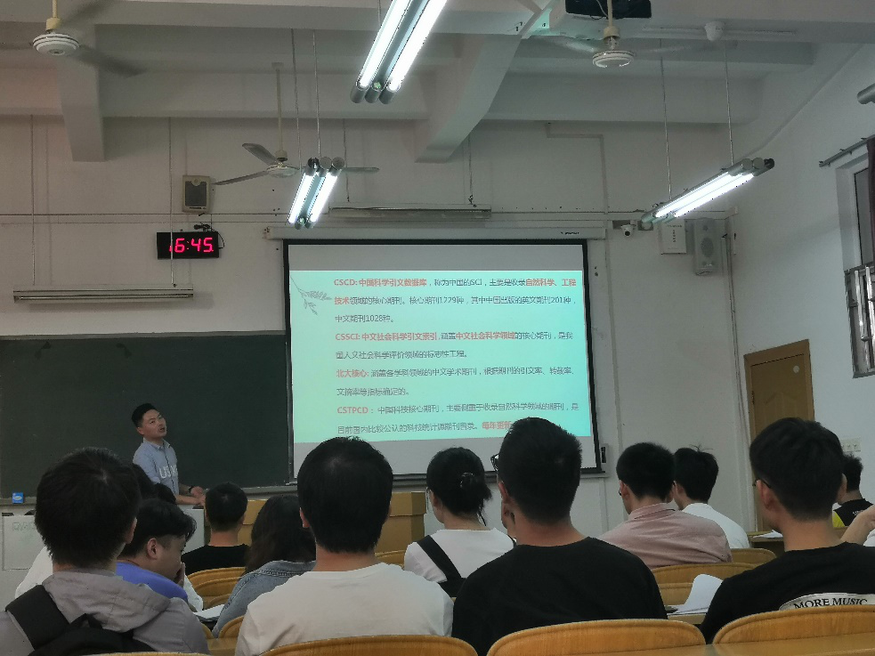 2020年11月19日下午16点30分,我院在9303教室举办了一场以“了解核心期刊 发掘优质资源 助力科研学习”为主题的学术讲座,主要内容为 “Spischolar学术资源在线系统”数据库使用介绍,讲座由湖南纬度信息科技有限公司—产品讲师刘俊主讲,参加讲座的同学主要为我院的在校研究生。