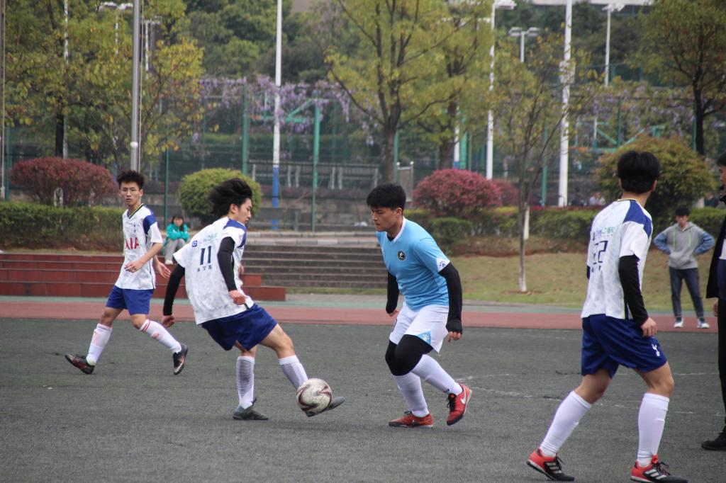 3月13日,在和商学院球队的比赛中,上半场我院球队技术高超配合默契,但商学院也阻挡有方,将我院球队困住,难以突破,而且商学院球员攻势猛烈,不断展示新的招式,最终商学院在上半场抢先了一分。下半场,我院球队以身手敏捷的优势,连续进攻,让对方球队措手不及,但对方球队阻挡猛烈,我方球队依旧难以夺分,只取得了一分。直至比赛时间截止,双方各进一球,打成平手。经裁判讨论决定,双方球队每人一次射球机会,射进一次计一分,我院球队领先两个球,赢得比赛胜利。