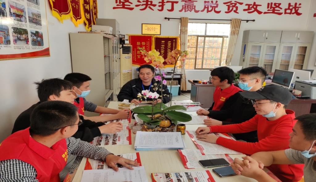 2月2日,土木实验2019-1班周家鸿同学同广西民族大学、广西大学、桂林电子科技大学三所高校的一些同学组队开展一场大学生寒假社会实践调研活动。当天下午,实践小组到达钦州市灵山县陆屋镇申安村委参与调研活动,申安村委书记罗旺彬十分热情接待实践小组。