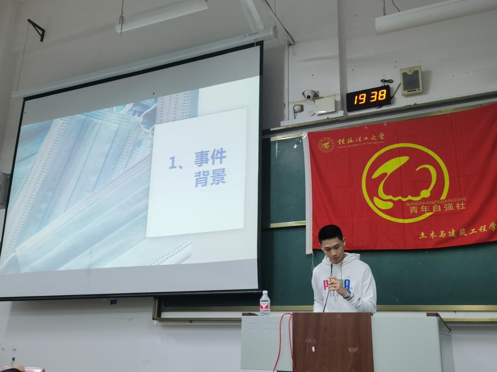 为呼吁同学们正确回收废弃口罩,增强同学们的环保意识和社会责任感,青年自强社于2021年3月9日在桂林理工大学雁山校区教学楼召开了口罩回收讲座。