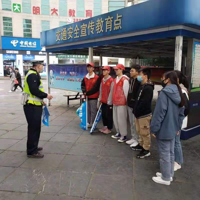活动当天,志愿者们按时抵达指定路口交警厅,经过交警培训后,志愿者们各个执勤路口。活动中志愿者们引导行人不闯红灯不逆行,遇到闯红灯或逆行的行人、驾驶员,志愿者们及时指出他们的错误并纠正。同时志愿者们向路过的行人发放交通安全知识宣传书,宣传交通安全知识。遇到行动不便的路人志愿者们主动向前搀扶。