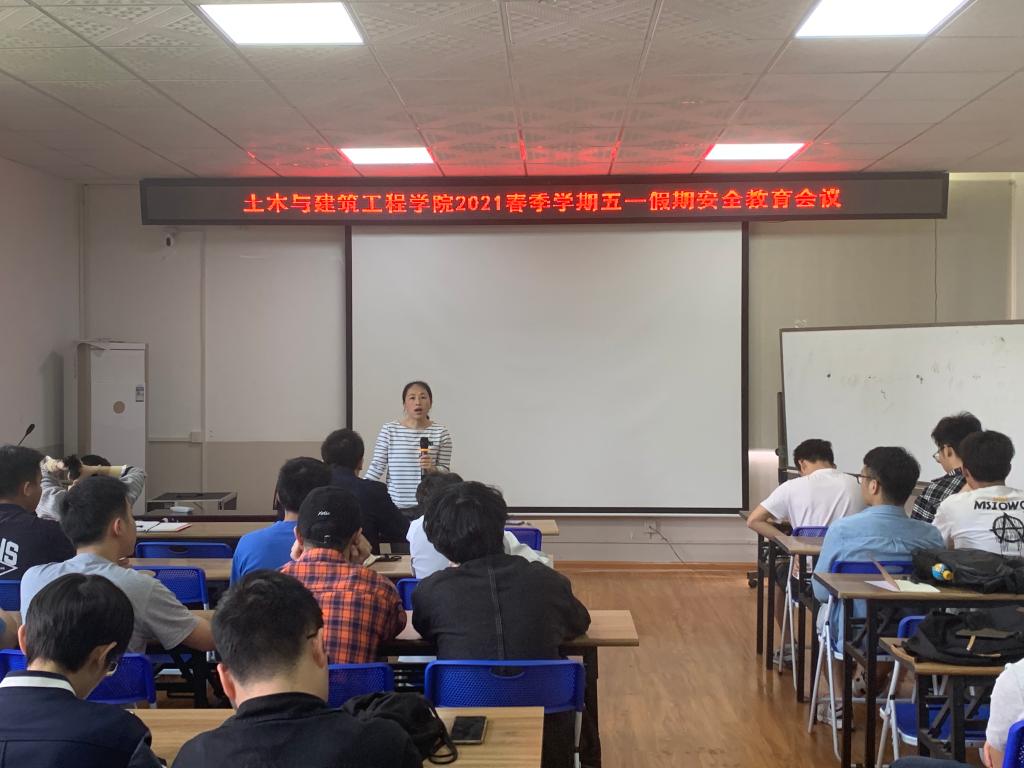 为切实做好“五一”放假前安全准备工作,防止各类事故发生,我院于4月30日在4203召开土木与建筑工程学院2021春季学期五一假期安全教育会议。会议由学院党委副书记唐丽华主持,学工组长夏勇超老师及各年级辅导员参会。
