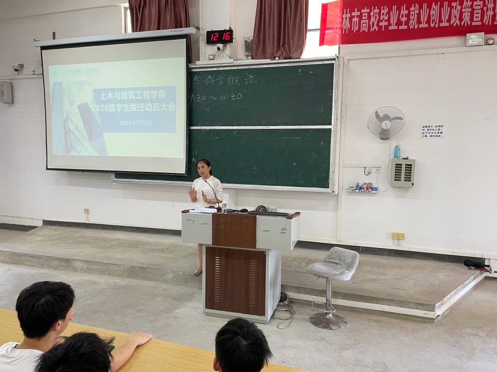 为确保学院2020级学生整体搬迁工作顺利推进,我院于7月7日在雁山校区05314室针对2020级学生召开了搬迁动员大会,学院党委副书记唐丽华参加会议。