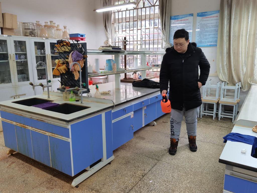 学院学工办的老师们携带消杀设备,以细致的操作、严谨的态度,深入学生宿舍进行了全方位消毒消杀,确保不留一处卫生安全隐患。各教研室师生也积极投入到卫生消杀的队伍中来,进入各教研室和实验室进行卫生消杀。
