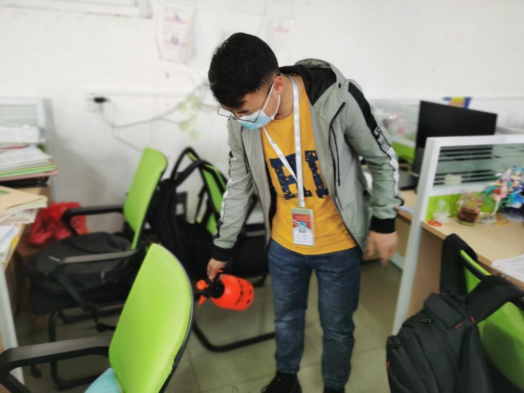 为做好学院学生返校后的疫情防控工作,有效预防、控制和消除危害,为全院师生创造一个安全良好的学习和生活环境,3月5日到3月7日,学院师生携起手来共同进行卫生消杀活动。