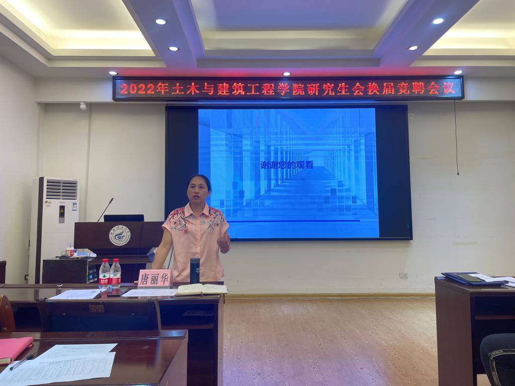 6月15日上午9时,我院研究生会于四栋4204教室召开土木与建筑工程学院研究生会换届大会暨优秀工作者颁奖仪式。学院党委副书记唐丽华老师,院研会主席团成员、各部门负责人以及研究生会各干事参加了会议。