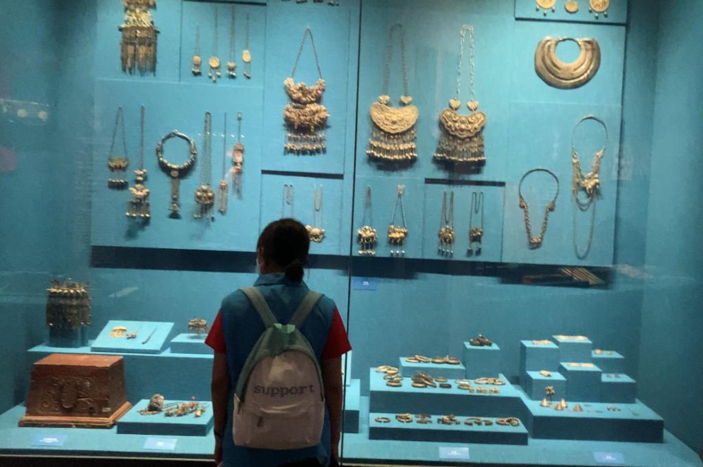团队成员进入博物馆后,首先被色彩鲜艳的巨幅壮锦织物和体形庞大但精致细节的铜鼓吸引住了眼球,感叹这民族文化的宏伟绚丽。这些精美别致的传统手工艺品作为族群标志,无一不反映出各民族因生活环境、历史传统、风俗习惯导致的审美意识相异。但却各美其美,美美与共,仿佛与世人们讲述着中华民族不同的历史故事。