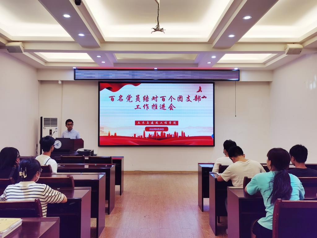 为进一步提升我院党建带团建工作水平,加强基层团建工作,9月26日上午土木与建筑工程学院团委组织召开“百名党员”结对“百个团支部”工作推进会,参与结对的学生党员和团支部书记参加会议,会议由学院团委副书记安邦国主持。