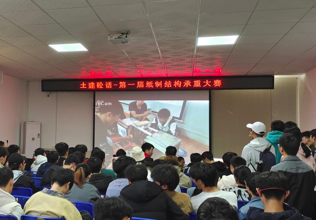 土木与建筑工程学院第一届纸质结构承重大赛在全体参赛人员和工作人员的共同努力下,于11月27日在屏风校区4203教室圆满落幕。学院“土建砼话”建筑知识竟能竞赛由学院团委、学生会组织,由结构模型协会承办的考验学生动手能力的学科比赛。