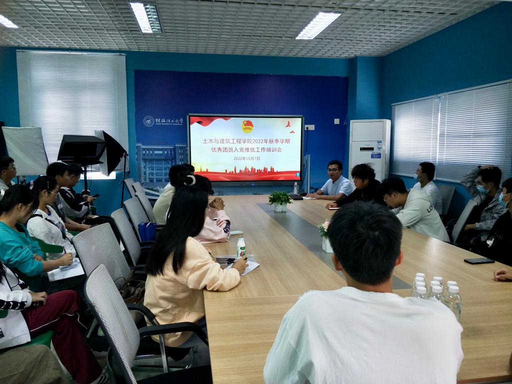 为进一步做好我院推荐优秀共青团员作党的发展对象的工作,10月7日中午土木与建筑工程学院团委在雁山校区行知楼B408室召开了优秀团员入党推优工作培训会,学院全体2022级团支书和班长参加了此次培训会,会议由学院团委副书记安邦国老师主持。