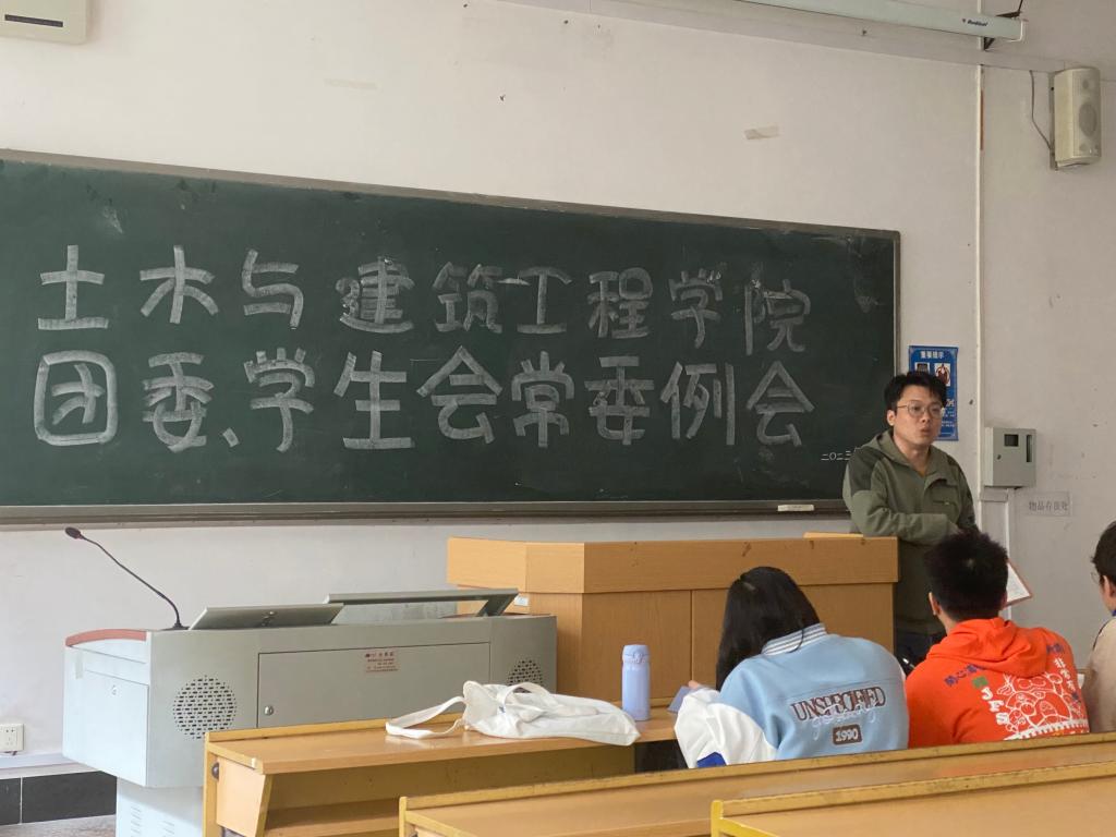 2023年4月18日,土木与建筑工程学院团委、学生会在屏风校区9113教室举行了土木与建筑工程学院团委、学生会常委例会。我院团委、学生会指导老师张宇博老师以及我院团委、学生会全体21级成员出席本次会议。本次例会由胡材添同学主持。