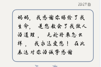 此次活动,同学们表达了对父母、朋友、家人、老师以及资助者的感激之情、思念之情以及美好祝福。同学们表示对此次活动的喜欢,让他们有了一个合适的契机表达自己的感情。