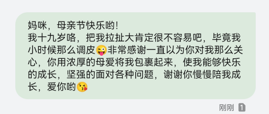 为切实做好学生资助工作,提升资助育人成效,营造浓厚的资助育人文化节氛围,激励广大受助学生感恩奉献,在母亲节来临之际,我院鼓励全体同学向父母、家人或资助者发送一条感恩短信表达对他们的感激之情,共收到短信截图200余条。