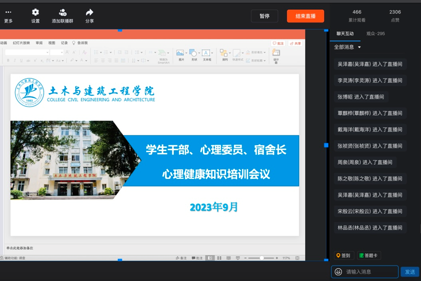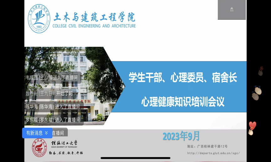 为充分发挥学生干部、班级心理委员宿舍长在心理健康工作中的积极作用,建设一支具有较强自助与助人能力的朋辈心理互助队伍。9月24日学院各年级开展开学初秋季学期学生干部、心理委员、宿舍长心理健康知识培训会。由全体2019级城规建筑、2020级、2021级、2022级学生干部、班级心理委员宿舍长心理委员参加本次培训。
