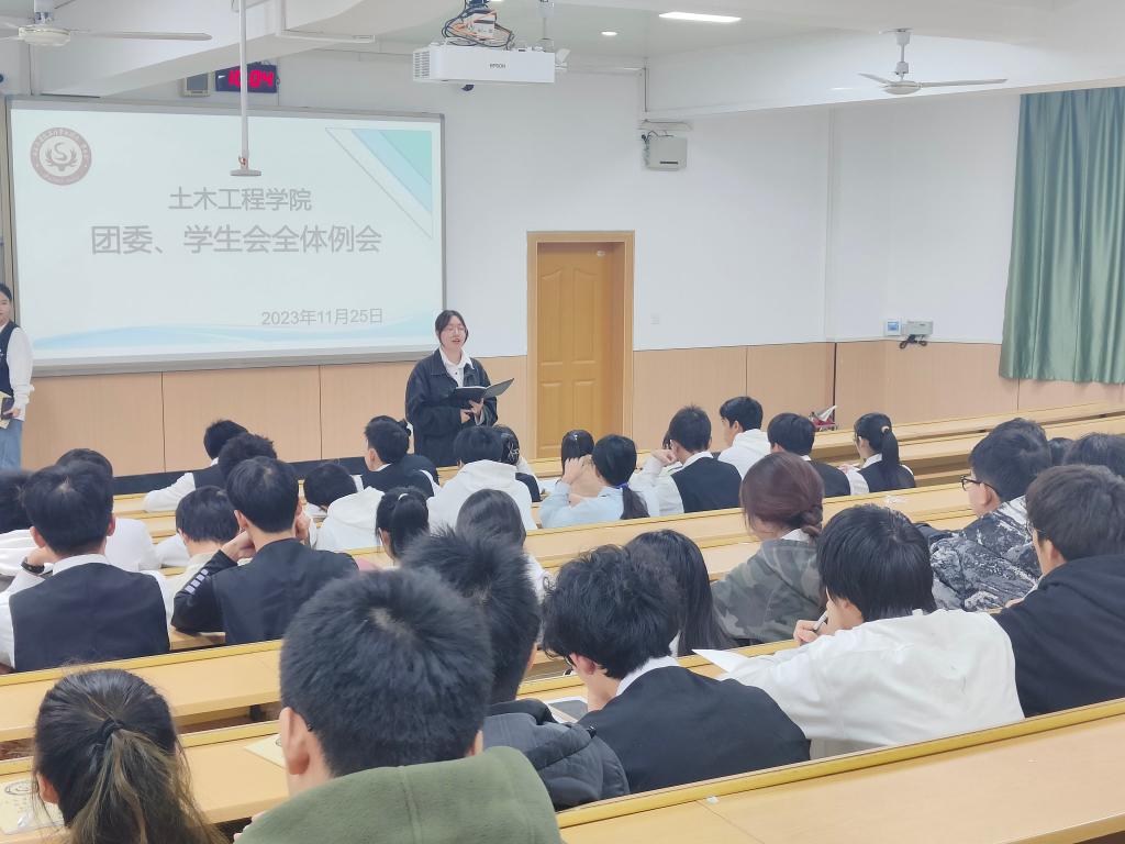 11月25日上午10点,土木工程学院团委、学生会于屏风校区9201召开本学期第三次全体例会。此次会议有22、23级全体成员参与。