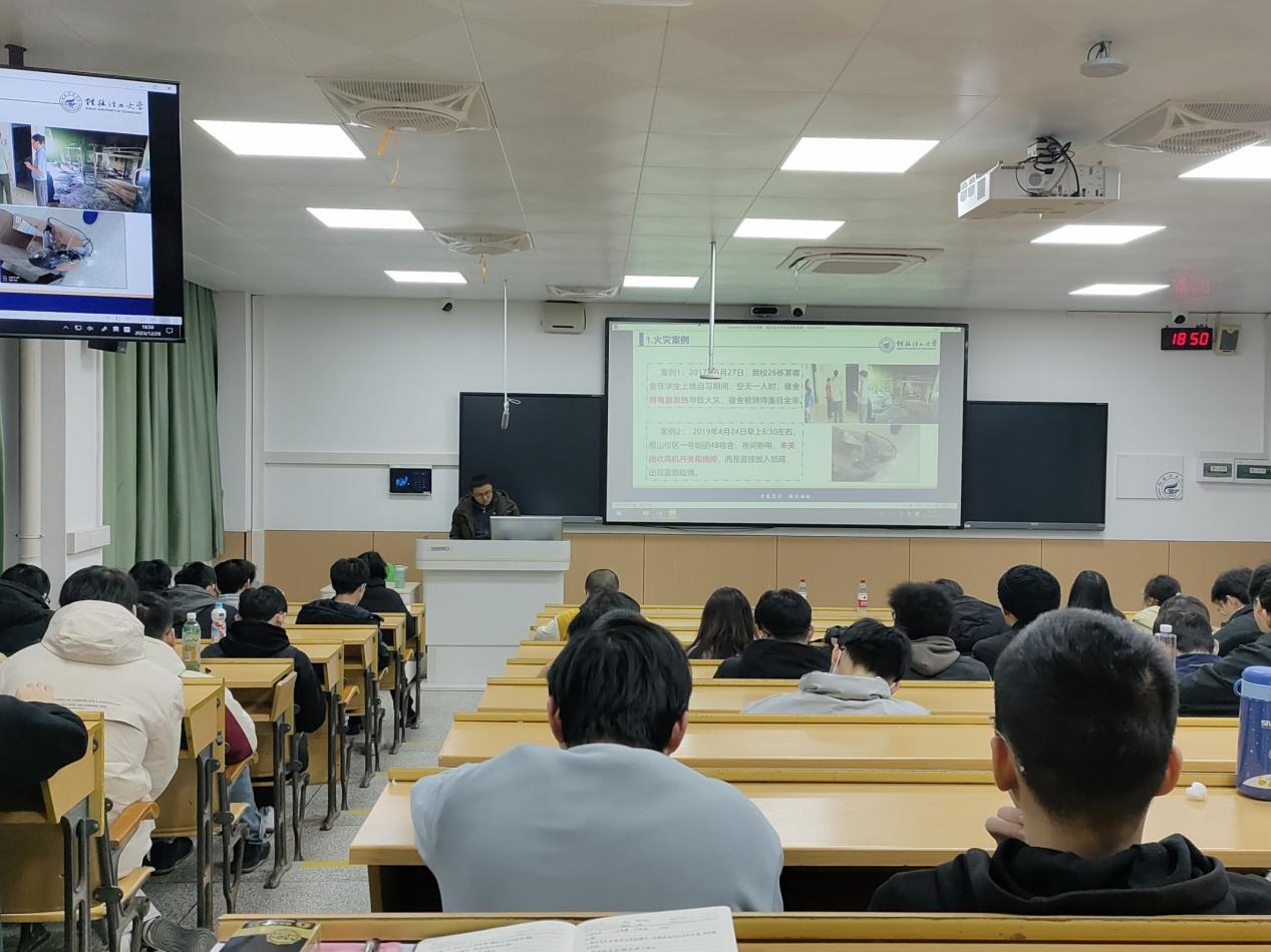 为了提高我院学生的安全意识和知识水平,2023年12月26日土木工程学院宿舍管理委员会联合学校保卫处老师在桂林理工大学屏风校区教九楼505举办了一场安全知识讲座。此次安全知识讲座由桂林理工大学保卫处王治国老师主讲,学院辅导员和学院120余名同学参与。