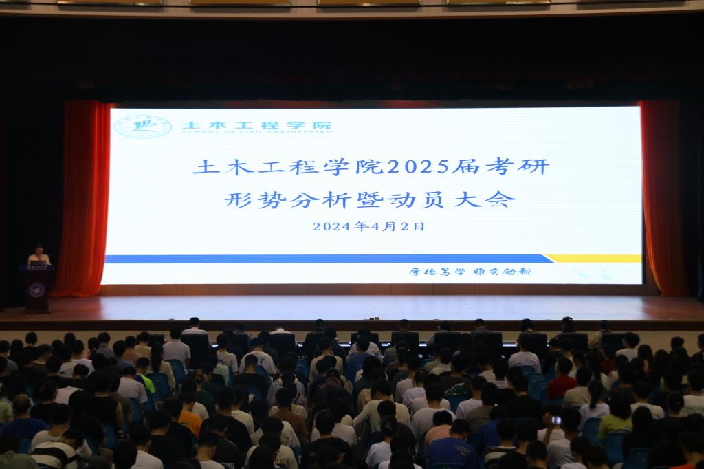 4月2日晚,在屏风校区体育馆三楼召开2025届考研形势分析暨动员大会,学院党委书记曾榕,学院副院长于晓辉、虞爱平、张研,学院副处级组织员杨晓及各教研室主任,全体辅导员,2025届各班班主任和全体同学参加本次大会。大会由学院党委副书记徐时主持。