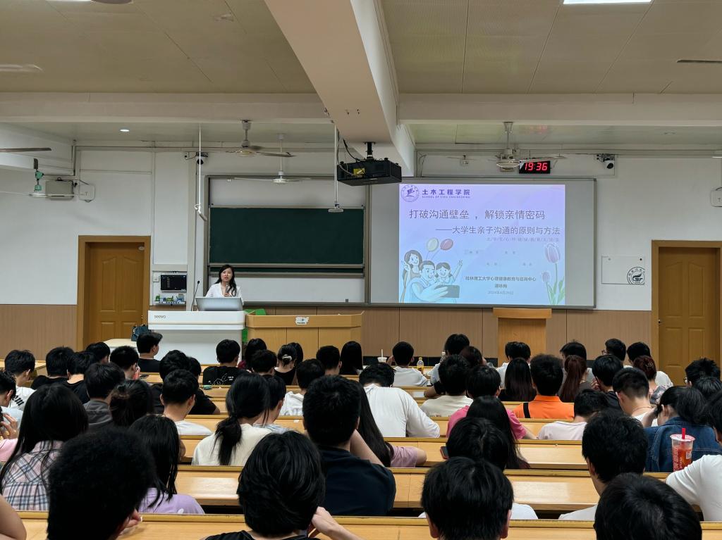 为帮助大学生理解亲子沟通的重要性,让学生和家长掌握有效的亲子沟通原则和方法,提高大学生与家人之间的情感交流和沟通能力。4月26日晚在屏风校区9301举行了“打破沟通壁垒,解锁亲情密码”主题讲座。本次讲座以线上线下结合的形式开展,由学校心理健康教育与咨询中心的谭咏梅老师主讲,唐子晴老师主持,线上、线下共有学生及家长500余人参与。