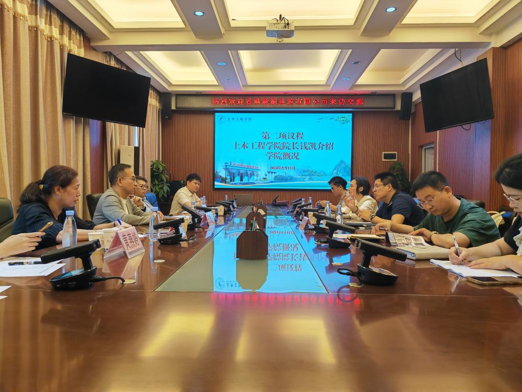 座谈会上,钱凯院长对来访企业到来表示热烈欢迎,并重点介绍了学院的学科建设、科研优势、实验室建设以及学院发展规划等方面工作。他表示希望以此次交流为契机,充分发挥校企协同育人效能, 实现优势互补、资源共享,畅通毕业生就业渠道,助力毕业生高质量充分就业。随后,香港顺源建筑有限公司高级项目经理伍耀荣先生介绍了企业的发展历程以及业务经营范围,希望能够通过此次交流促进长远合作,吸纳更多的优秀毕业生融入大湾区发展,为整个区域创造社会和经济效益。