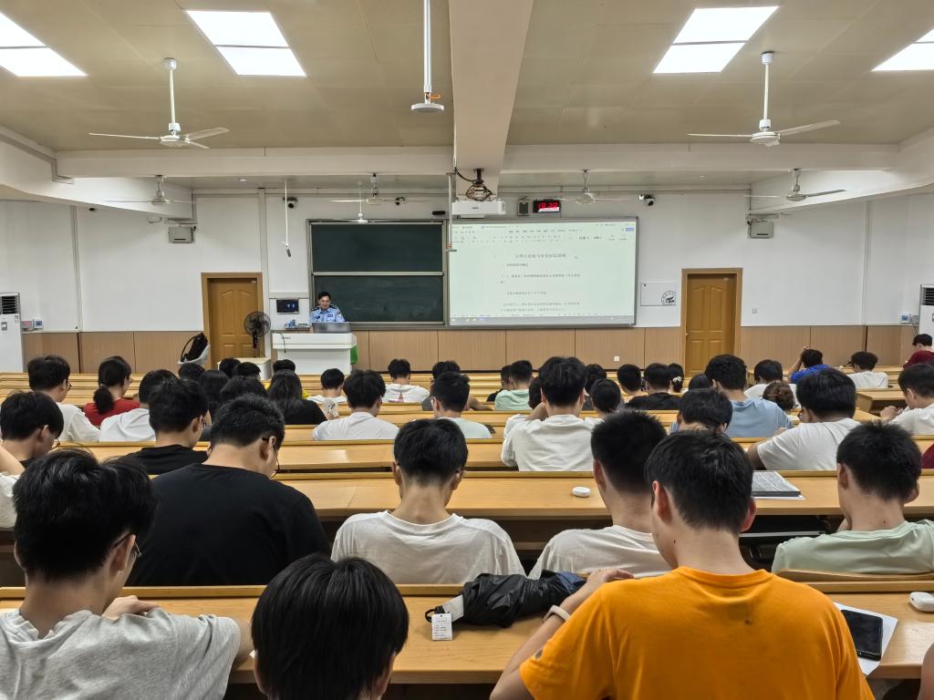 5月16日晚,土木工程学院邀请了桂林市公安局派出所民警蒋建军,在屏风校区9201多媒体教室为同学们作了“法治与安全教育”专题讲座。讲座由学院学生工作组组长张萌萌主持,近200多名同学聆听了讲座。