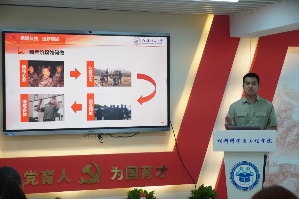 土木工程学院刘安宇从“携笔从戎,逐梦军旅”“励志笃行,自强不息”“躬行实践,笃志力行”三个方面将成长经历进行总结分享,鼓励同学们要做好对大学生活的规划,积极参与各类文体活动,在实践锻炼中沉淀担当,在知行合一中淬炼初心。