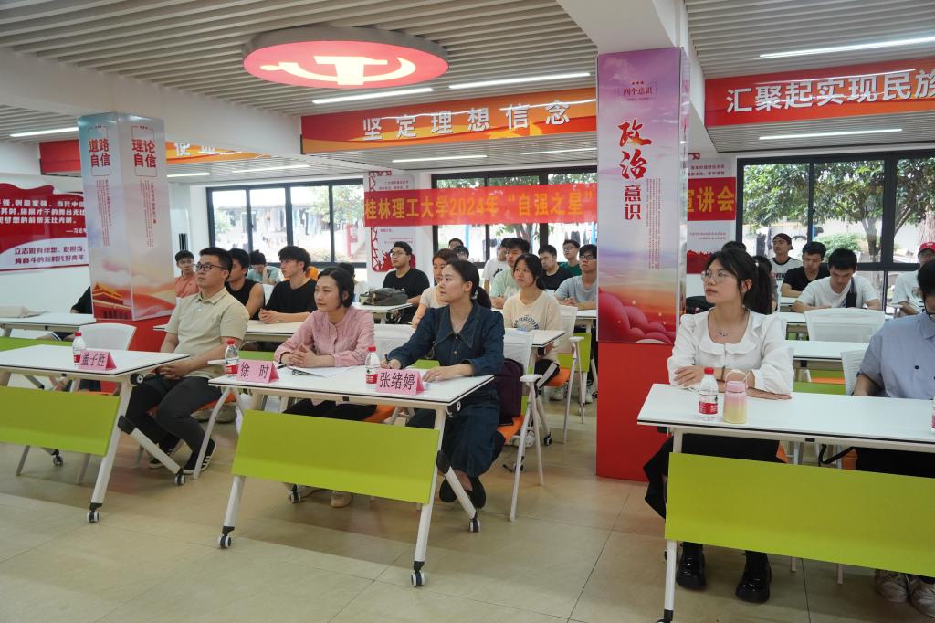 此次“自强之星”优秀事迹宣讲会的成功举办,充分发挥青年典型模范的带头作用,号召桂工学子“向榜样看齐、向模范学习”,以实践诠释青年担当。引领青年学生将自强奋斗融入党与人民的事业中去,在新时代浪潮中赓续前行、奋楫争先。