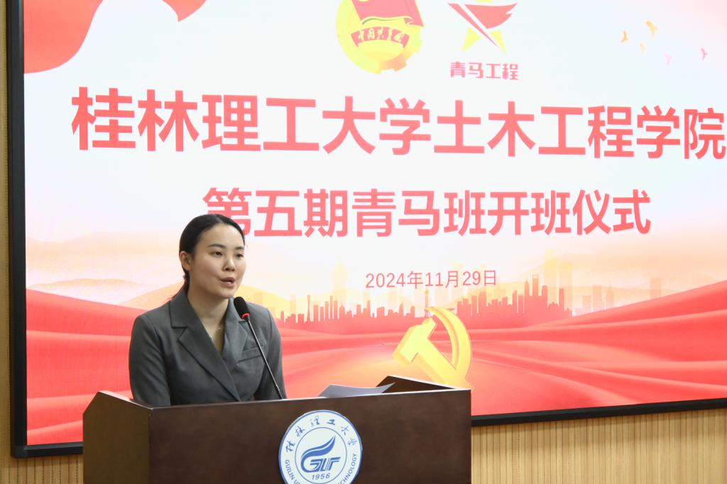 学院团委副书记在致开班辞时表示,青年是祖国的未来和民族的希望,培养青年马克思主义者是党的一项重要工作。她指出,成立青马班的初衷是为了培养一批具有坚定理想信念、扎实理论功底和突出能力素质的青年人才。她鼓励全体学员要增强政治意识,练就过硬本领,做好榜样示范,为实现中华民族伟大复兴不断贡献力量。同时,她对本期青马班的顺利开班表示祝贺,并预祝全体学员在培训中取得优异成绩。