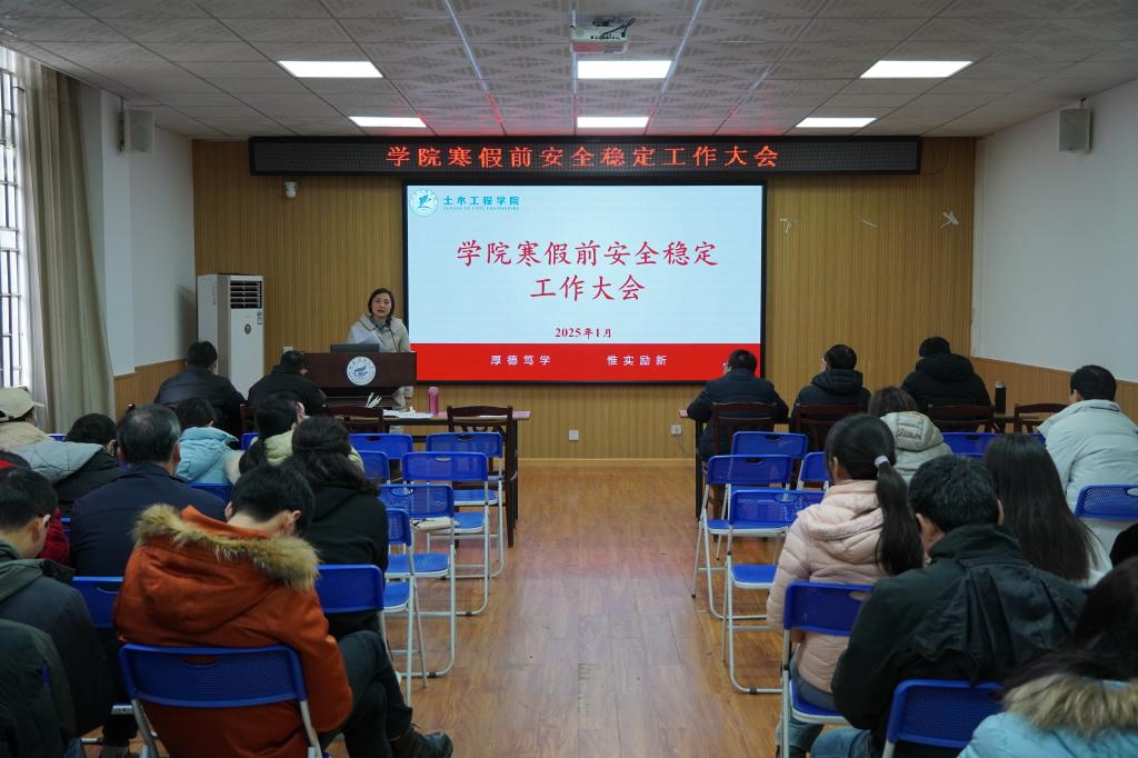 1月11日上午,土木工程学院在屏风校区4203会议室召开2025年寒假前安全稳定工作会议,分析学院当前安全稳定工作形势,部署寒假及今后一段时期安全稳定工作。学院领导班子、全体教职工参加会议,会议由学院党委副书记徐时主持。