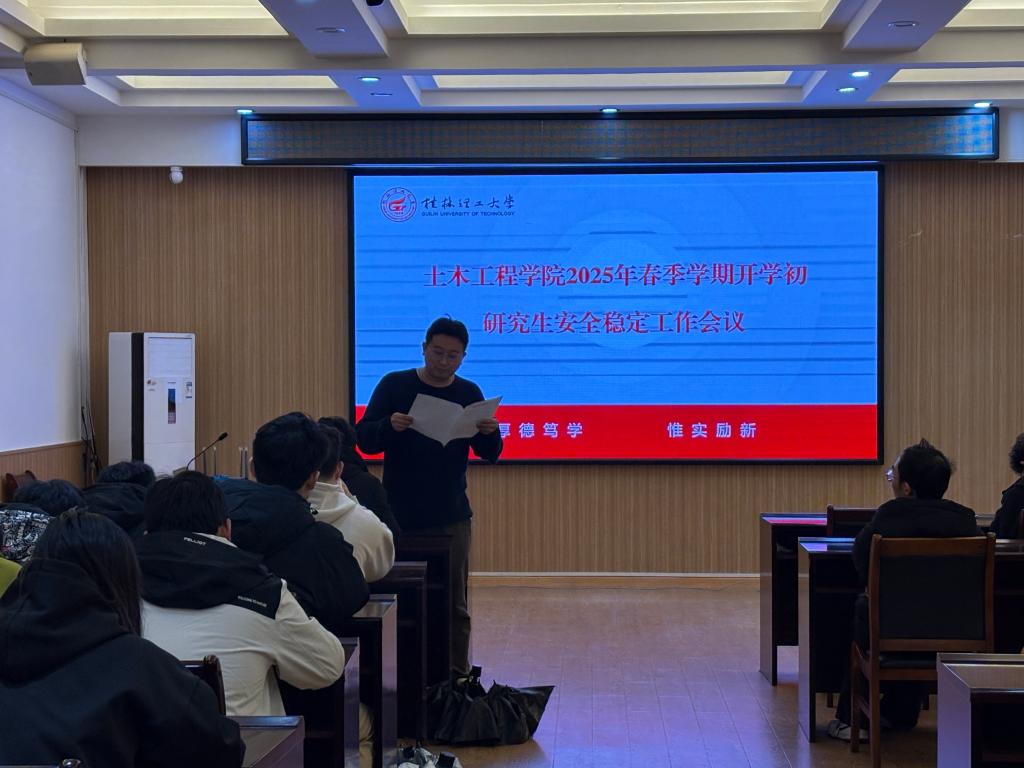 3月11日,土木工程学院于屏风校区4204召开了2025年春季学期开学初研究生安全稳定工作会议,会议由研究生辅导员张萌萌老师主持,研究生兼职辅导员、研究生助管以及研究生各年级班团干部参与此次会议。