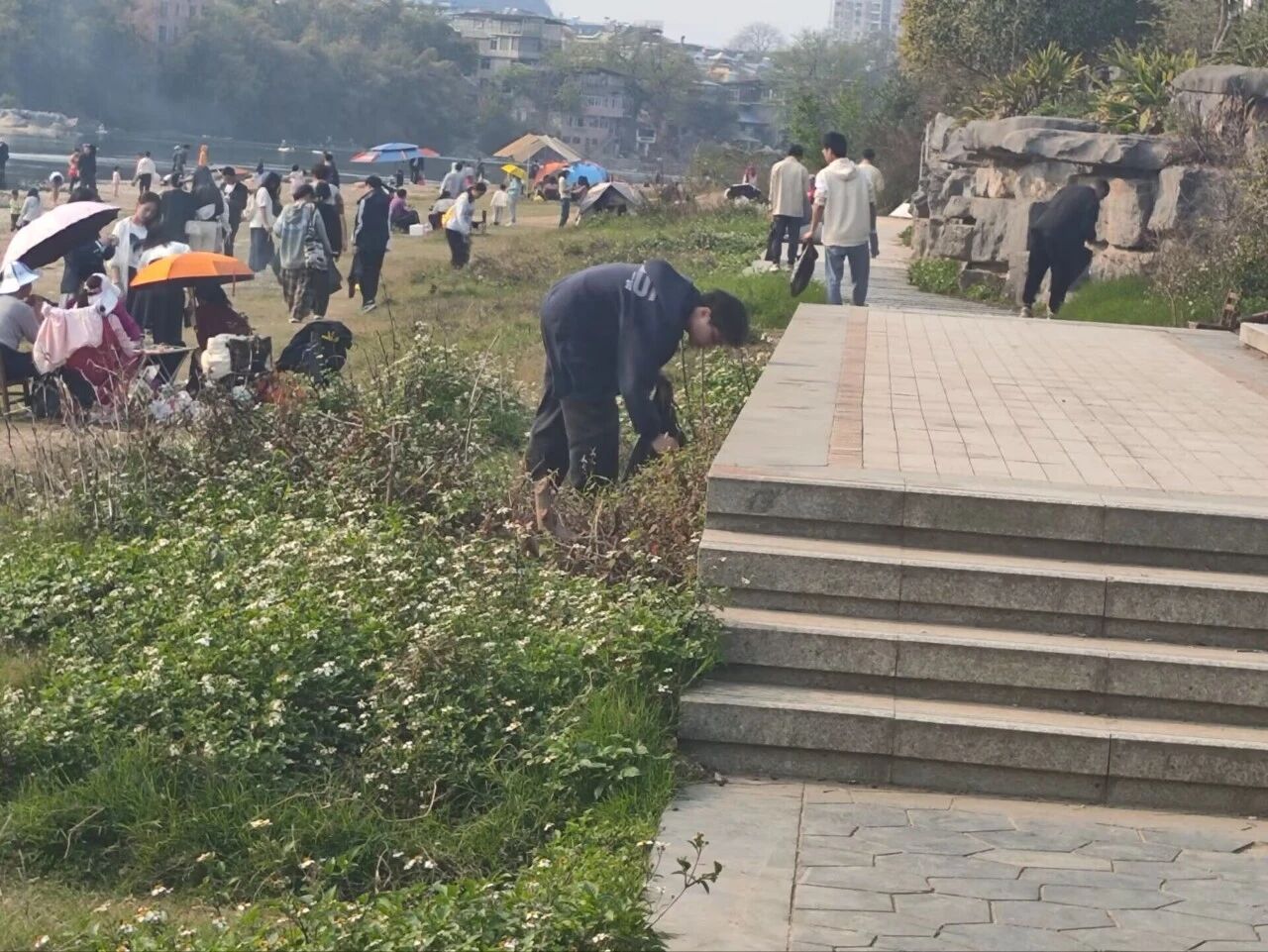 活动前,学院自强社负责人向志愿者们强调了安全注意事项,说明清理时尽量在岸边平缓区域作业,避免靠近深水处;垃圾分类装袋,可回收物与不可回收物分开处理。活动中,志愿者们以小组为单位,手持垃圾袋、垃圾夹,沿漓江沿岸展开清理工作。志愿者们蹲身细致捡拾沿岸草丛、石缝中隐藏的塑料瓶、食品包装袋、烟头,甚至用手掏出卡在石缝里的垃圾。不少游客被学生们的行动感染,主动将手中的垃圾投入志愿者的垃圾袋中,还有市民上前询问活动信息,表达了参与类似志愿行动的意愿。1个半小时的清理后,志愿者们共收集了28袋垃圾,其中可回收物5袋,其余垃圾均统一运送至附近的垃圾处理点。活动结束后,学院2023级学生李同学感慨:“平时来漓江只看到美景,今天才发现隐蔽处的垃圾这么多,更觉得我们的清理很有意义。”