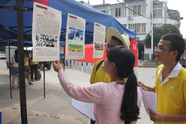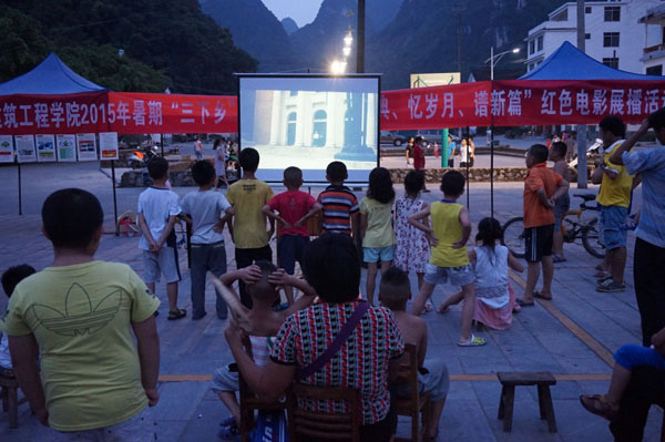 为追忆那份红色激情岁月,学院实践团分别于7月14日晚和15日早上进行了红色电影展播、党史宣传及党史了解问卷调查活动。 放映现场虽然没有座椅,但丝毫未影响前来观看电影的当地居民的兴致和热情。大家纷纷表示,露天电影的方式增进了大家沟通交流,红色电影让大家回到了那难忘的岁月,深切感受了革命先辈们为国家民族的解放和发展不惜牺牲一切的伟大精神。通过红色电影的展播,进一步弘扬了革命传统,传播了党的知识,让大家进一步了解党的光辉历程、增强党的意识、坚定理想信念。15日早上,实践团成员趁热打铁,深入街头向当地村民发放党史调查问卷,村民们都积极配合,在实践团成员的帮助下认真完成调查问卷,让当地群众重温了我党在带领全国人民取得独立的红色革命史和踏上新时代的道路的探索史及党的十八大精神和“我的中国梦”的宣传。同学们热情洋溢的介绍吸引了众多赶集群众前来观看,乡亲们在充分肯定中国共产党94年来创下的丰功伟绩的同时更对历史上众多优秀党员给予了高度的赞扬 本次红色电影展播,党史宣传活动的成功举办不仅提高了当地群众对中国共产党的认识,同时也让我党的政策及执政理念深入基层,让基层群众知党情、知国情,从而以乐观积极的态度跟党走,为实现伟大“中国梦”和建设中国特色社会主义打下坚实的群众基础。