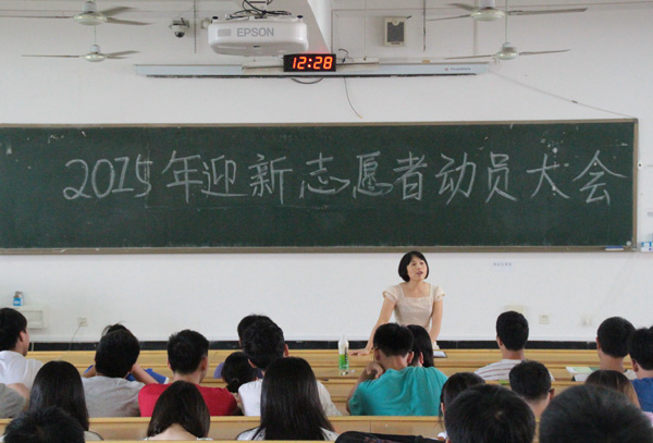 9月10日中午,我院在屏风校区9101召开了2015迎新志愿者动员大会,团委书记唐丽华老师出席了本次会议。 会上,唐老师首先强调了往届迎新期间屡次出现的各种问题,告诫本次参加迎新活动的志愿者们做好本职工作,积极宣传学校和学院,弘扬“桂工”精神,向2015级新生传递正能量。其次,向志愿者们讲述了迎新工作流程和相关注意事项。会议最后,唐老师给志愿组组长详细的工作分工。 迎新活动即将到来,时间紧张,任务繁重,但是同学们积极性非常高,相信我们此次迎新活动定会取得圆满成功!