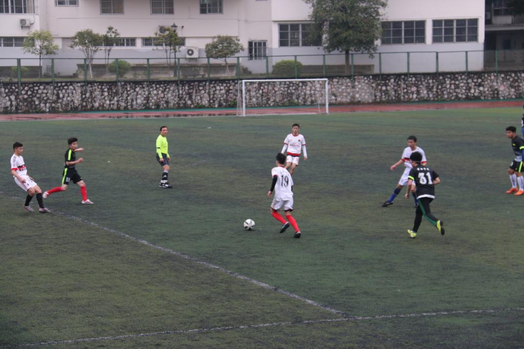 下午三点,随着主裁判的一声哨响,比赛正式开始。在第一场以4:0大比分战胜管理学院后,每一位队员都以饱满的热情、昂扬的斗志奔跑在这绿茵场上。尽管天公不作美,一场时断时续的暴风雨给这场比赛带来了别样的插曲。而场上的每一位队员的热情丝毫没有被风雨给浇灭,反而给了他们更大的动力。比赛进行到第 30分钟,双方实力不相上下,比分依旧停留在0:0,第35分钟,我院队员抓住机会,凭借着默契的配合,果断的传球,成功破门,将比分改写成了1:0,队员们士气大振,在接下来的几波进攻中都给对方球门造成了巨大的威胁,最后,依靠队员们严密的防守和有组织的进攻,将比分保持到了最后,成功拿下比赛,以小组第一的成绩出线。