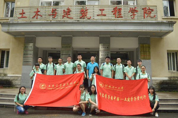 2016年7月11日的早上,学院党委副书记王盛老师在学院教四楼前给由4位研究生代表和16名本科生代表组成的20人实践团进行了出发前的讲话。王盛副书记为我们强调到:“我们要借此社会实践活动积极和贵州大学土木工程学院进行深入的学习交流,深入开展‘两学一做’学习教育,拜谒遵义革命圣地,并且通过参观500米口径球面射电望远镜工程和清水河大桥,领略中国技术占据世界领先地位……”