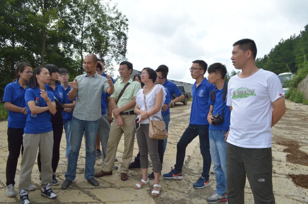 实践团在即将到达清水河大桥时,竣工的清水河大桥远远望去仿佛“悬挂”在山谷间的一条橘红色的彩带,在郁郁葱葱的森林的映衬下显得格外美丽壮观。清水河大桥,是一座主跨1130米的钢桁梁悬索大桥,主跨长度为贵州省第一,亚洲山区钢桁梁悬索桥第一,主塔塔顶至清水河江面垂直高度达到540米,清水河桥面距峡谷垂直高度也达到406米,是世界第二高桥。在实践团队来到大桥后,负责此项目工程的中交第二公路工程局第二工程有限公司的刘总和张总为同学们一一解答了关于桥梁结构以及施工方面的问题。最后,刘总嘱咐同学们:“干我们土木建筑这一行,大家应该要趁着年轻多学点,不要怕吃苦,有磨练才有收获!”,同时刘总也解答了同学们关于企业如何招聘大学生的疑问:“企业最看重的人才是专业知识积累深厚,具有良好心态能够在基层踏实做事,工作能力强的大学生。”