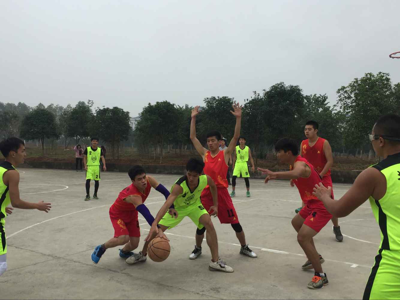 当天清晨,我院男女篮分别迎来与地球科学学院和环境学院的对决赛。我院男女篮一开始就所向披靡,不断地把敌方远远抛在身后,比分差距不断拉大,充分展现了我院运动员们的顽强拼搏,力争上游的积极进取精神。最后,我院女篮以43:26比分取胜环境学院,轻松晋级决赛。赛场上,我院啦啦队也不甘示弱,啦啦队员们围绕整个球场,不断高喊,为场上运动员们加油助威,不知疲倦。下午烈日当空,然而我院男篮不畏酷暑,满怀欣喜奔赴赛场。其中,男篮展开与艺术学院的对决,“战争”愈演愈烈,比分不相上下,我院男篮奋起拼搏,把比分相对拉大。此刻双方开始了持久战,敌方反超,比分又又被拉平。最后,我院男篮以47:44比分无缘决赛。