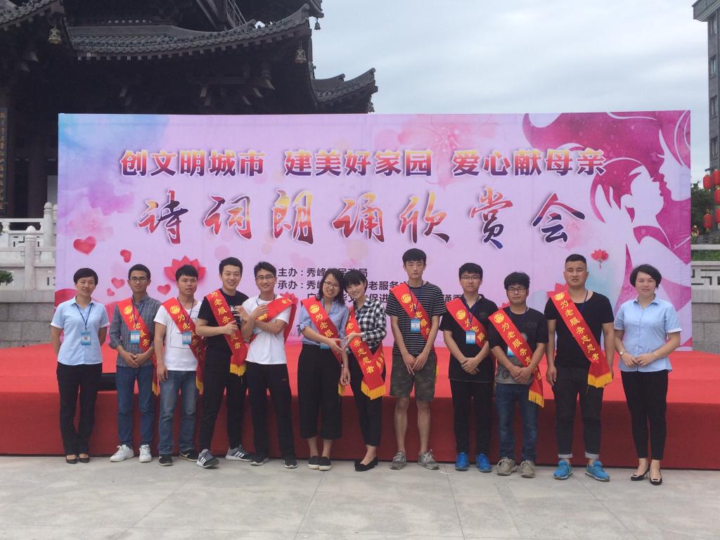 5月11日,桂林市秀峰区“创文明城市 建美好家园 爱心献母亲”诗词朗诵欣赏会活动在桂林逍遥楼景区举行,活动由秀峰区民政局主办,秀峰区居家养老服务中心承办,我院学生志愿者协助开展此项活动。