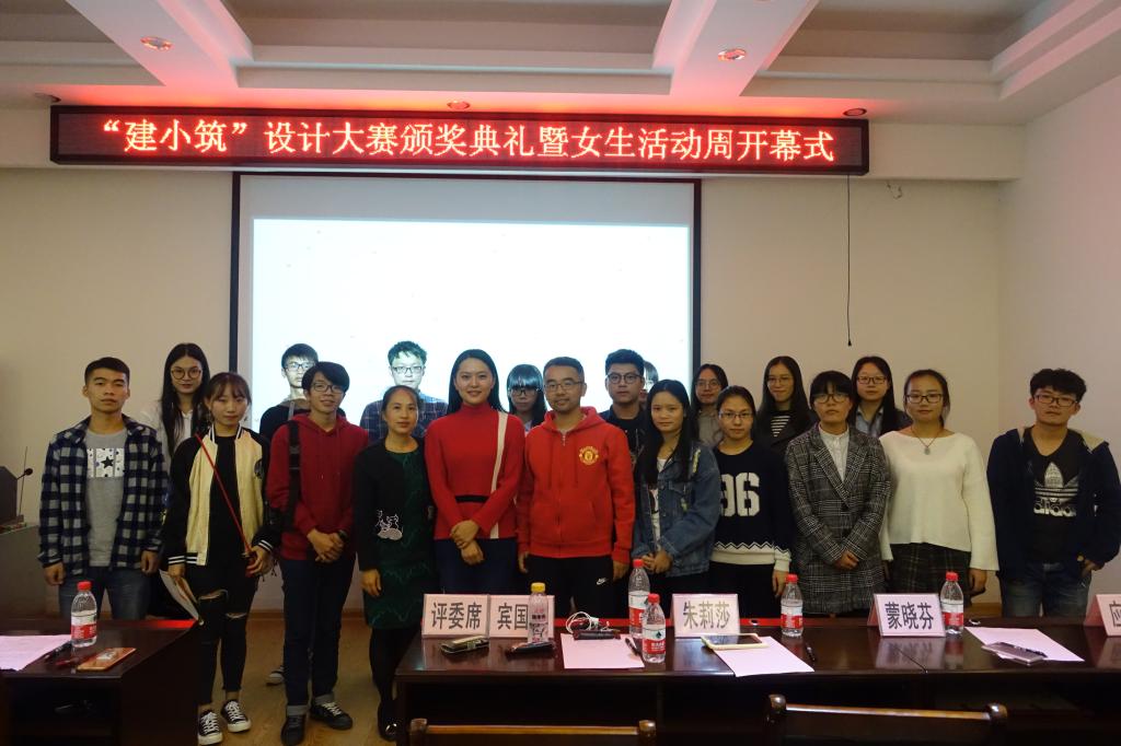 11月11日下午三点,我院在屏风校区教四楼4204会议室成功举办“建小筑”设计大赛颁奖典礼暨女生活动周开幕式,学院团委书记唐丽华老师,城规教研室宾国澍老师、朱莉莎老师参加了本次活动。