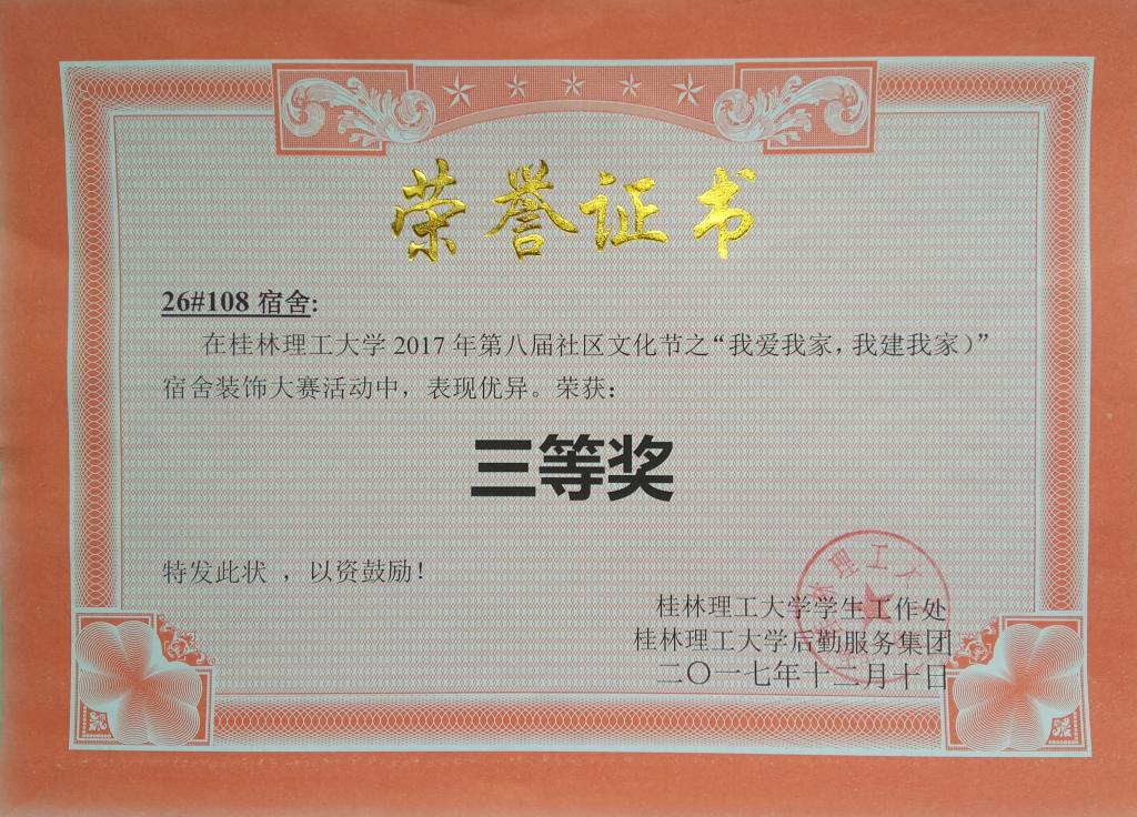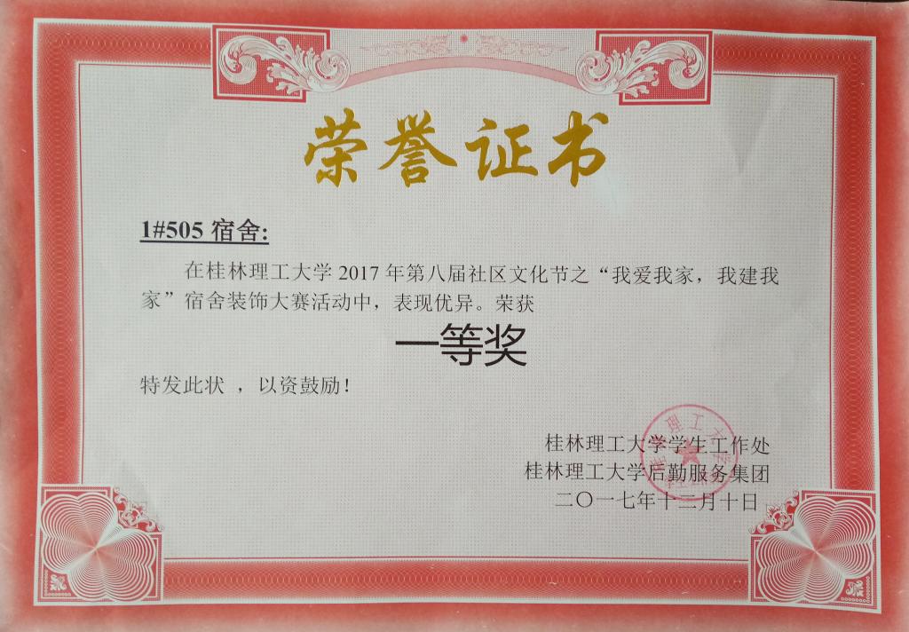 近日,2017年学校校级宿舍装饰大赛评比活动圆满落幕。经过学院宿舍管理委员会的精心组织和同学们的精心备赛,我院推荐了屏风校区的1#505宿舍,雁山校区的23#330、26#108宿舍代表学院参加了此次校级宿舍装饰大赛评比活动。