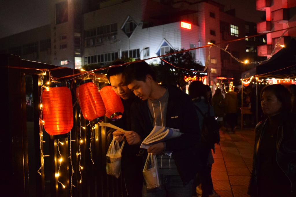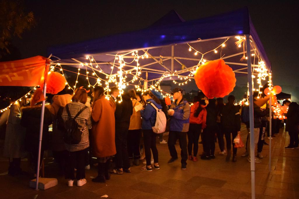 活动顺利于12月26日晚在屏风校区食堂三岔路口处举行,主要面向三个学院的全体学生,活动期间吸引了许多同学以及老师相约而来。犹记得“去年元夜时,花市灯如昼”,而“今年元夜时,月与灯依旧”。老师同学们摘灯谜、猜灯谜,欣赏灯景,感受灯谜奇妙的魅力,欢乐享不停。同时,同学们还参与了背靠背挤气球,蒙眼睛摸鼻子,正话反说等趣味小游戏,活动现场洋溢着热闹喜乐的气氛,大家共聚灯市,带着对新的一年的期盼,一起迎接着元旦佳节的到来!