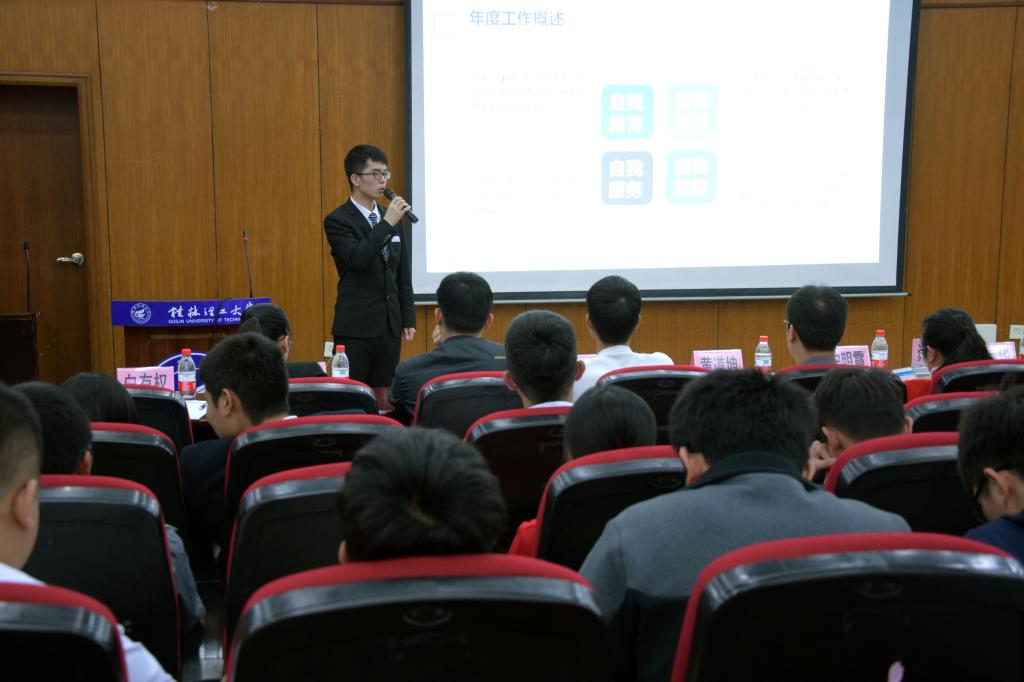 本次活动举办旨在对上一年度各学生组织的工作进行总结与表彰。大会伊始,在共同回顾2017年学院学生活动的总览视频后,由团委书记唐丽华老师宣读了学院2017年度学生集体和个人获奖情况通报,唐老师充分肯定了学生组织在工作中取得的成绩,希望获奖学生组织和个人戒骄戒躁,在下一年中再创佳绩。在接下来的学生组织年度总结答辩中,各组织展示了过去一年里的工作成果及2018年工作展望。学生代表詹贺、周敏、杨明给与会人员做关于创新创业、学科竞赛、科研论文以及体育运动等方面的经验介绍,他们用自己的成绩充分展示了我院学子的积极向上、勇敢拼搏的精神面貌。最后经过评比最终新媒体中心、院团委.学生会以及学院青年自强社荣获年度“优秀学生组织”称号。