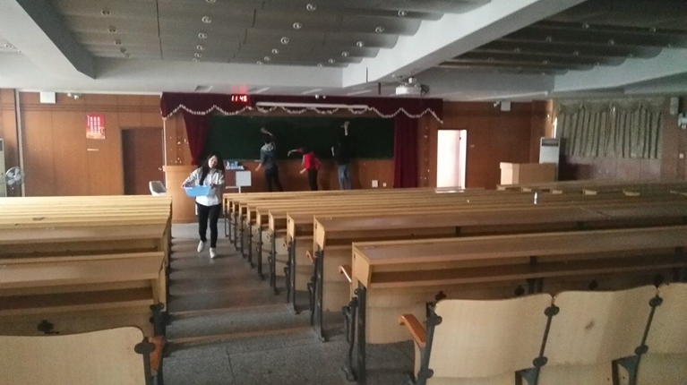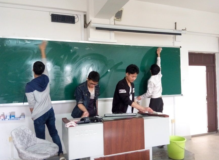 为了让广大师生能有一个清洁舒适的教室环境。3月24日,我院580志愿者协会成员和志愿者们对雁山校区五、六栋教学楼和屏风校区九栋教学楼进行黑板讲台的清洁活动。早上10点钟集合分工完毕,活动负责人在嘱咐大家所需注意事项后,志愿者们便提着桶,拿着抹布走进一间间教室,提桶打水,洗布擦拭都格外一丝不苟,生怕漏过每一个卫生死角。志愿者们或仰头抬手对高处进行清洁,或低头弯腰对较矮处进行抹擦,辛勤的劳动换来了教室的明亮,志愿者们发自内心的开心。